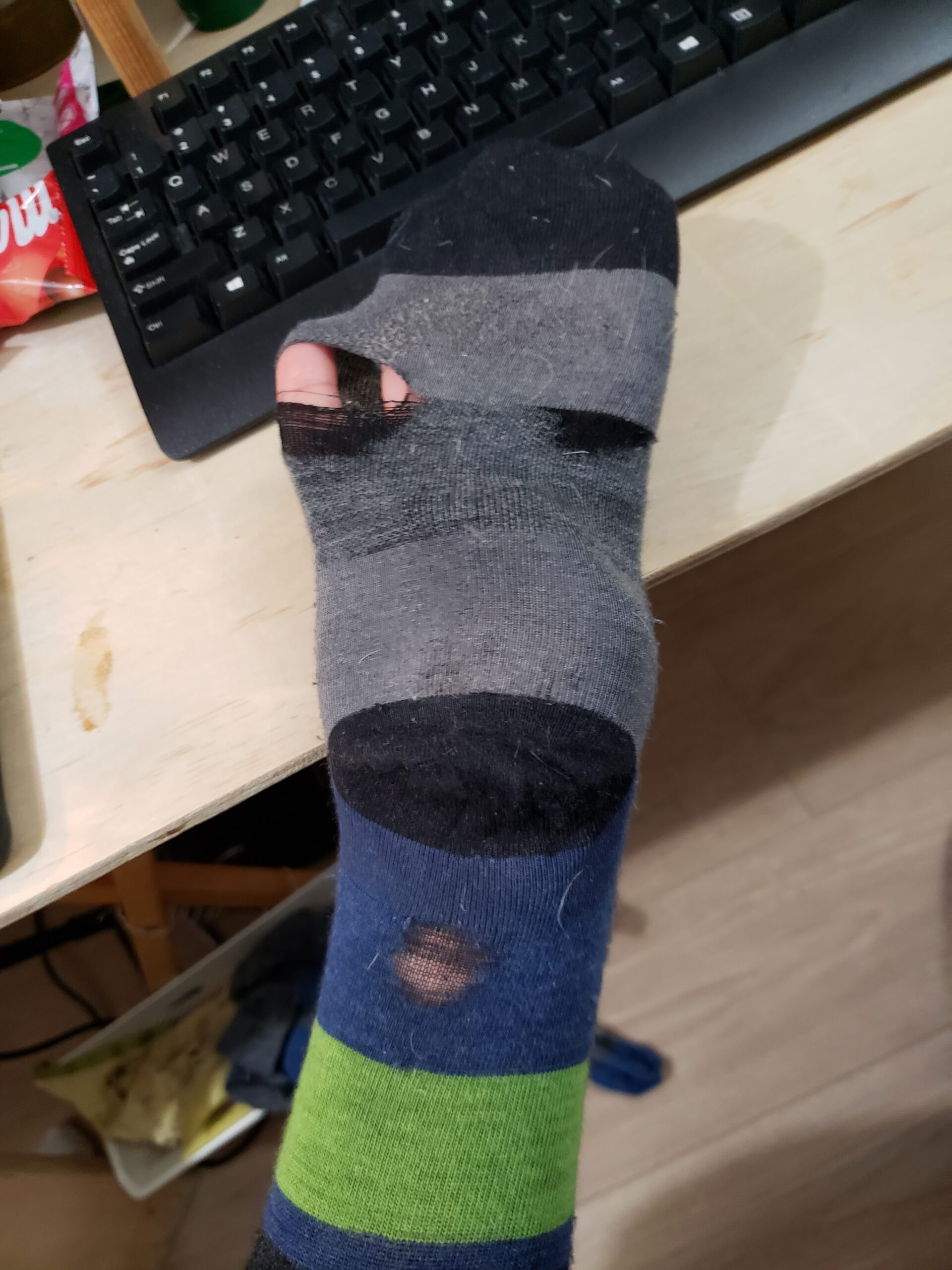 That pattern went on until the first hole appeared, October. So 10 Straight Months of non-stop rotational wear! 10 MONTHS! Never has a sock lasted this long, and I’ve never concentrated on only wearing these hyper comfy socks and not caring about the wear and tear, just _wear_ them!