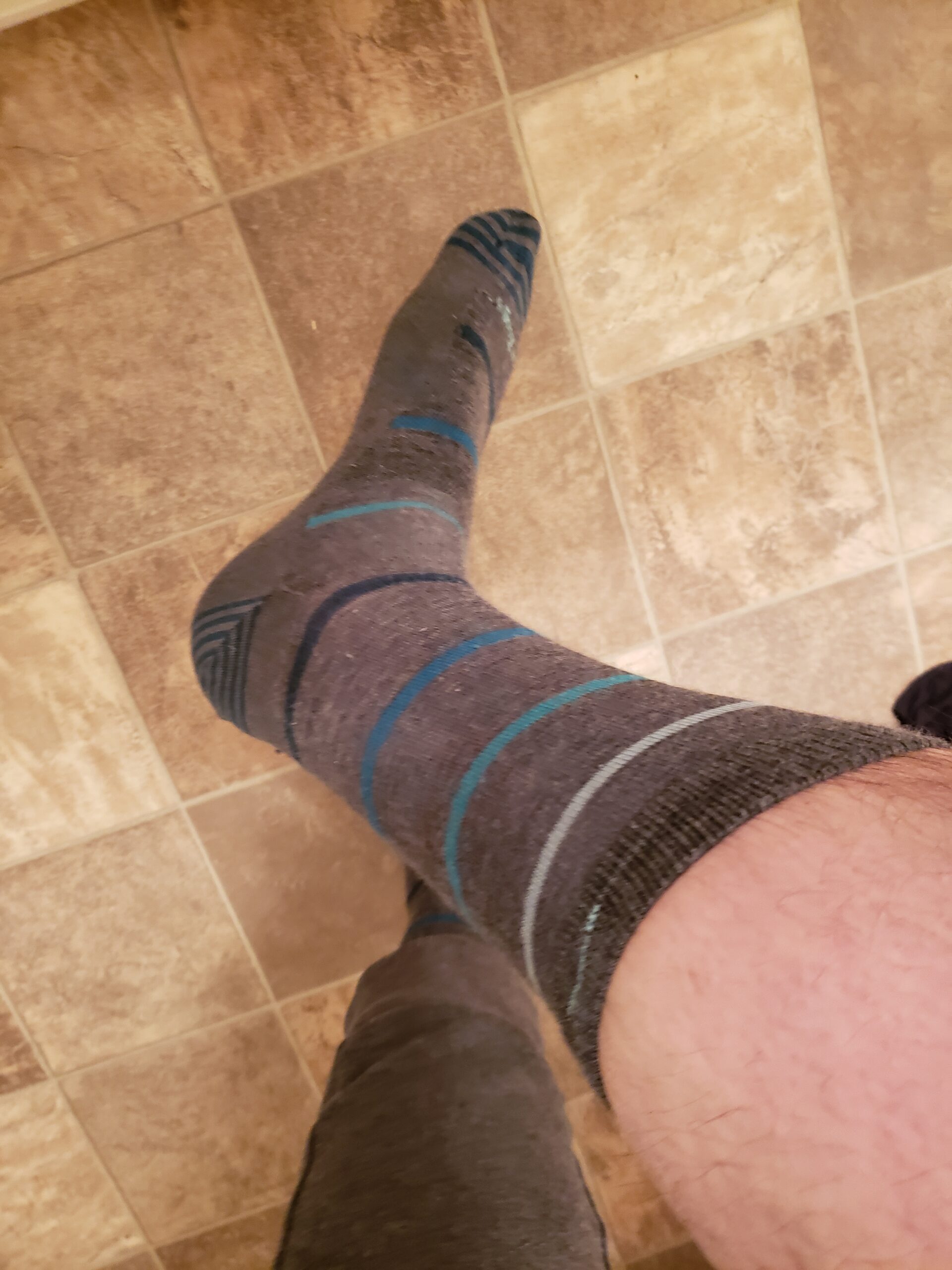 The 1st pair of the “Type B” socks I bought from Darn Tough. Grey normal height socks with blue toe.